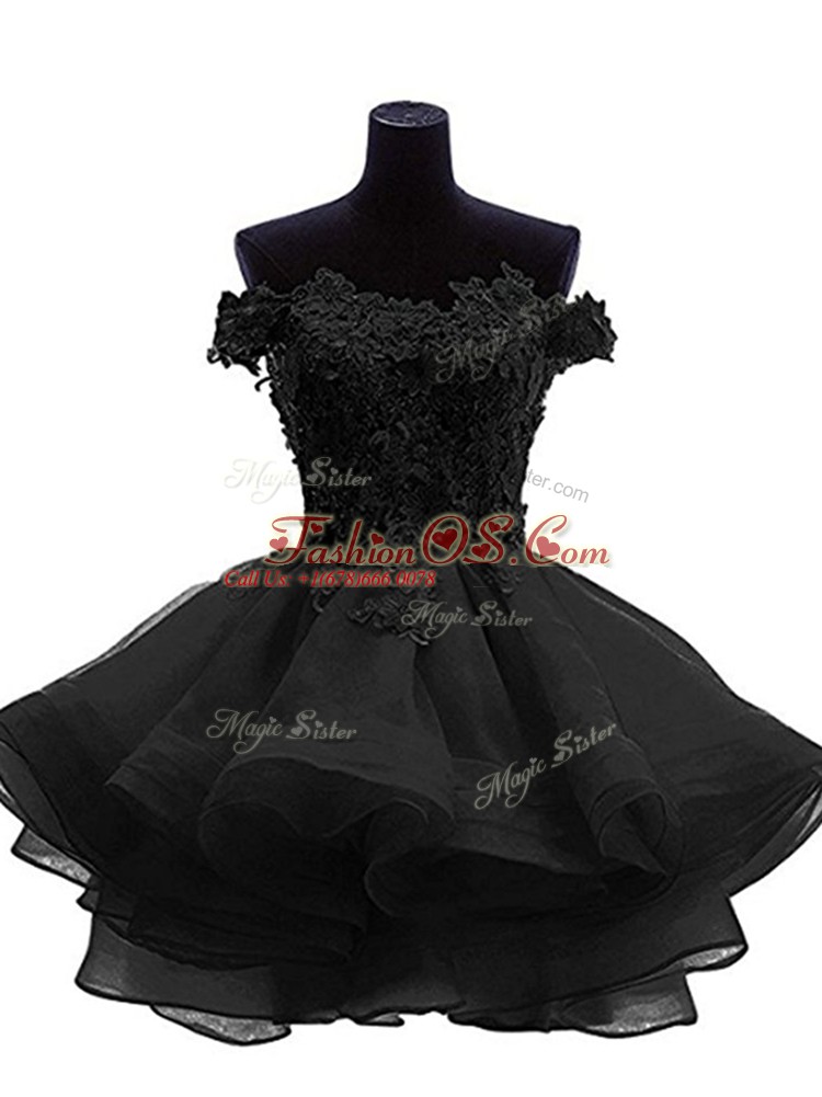 Home >  Special Occasion Dresses >  Little Black Dresses > Beading and Lace and Appliques and Ruffles Prom Evening Gown Black Zipper Sleeveless Mini Length