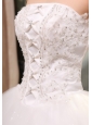 Wedding ceremony is the most important event for a girl. A gorgeous wedding gown will make your wedding memorable and everlasting. It features a strapless bodice with a straight neckline. A corset like embellishment accents the front with glittering beadwork, which looks stunning and unique. layers of tulle and a lace hem adds beauty to the already exquisite wedding dress.