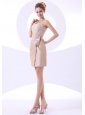 Beading and Lace Decorate Bodice Strapless Mini-length Champagne 2013 Prom Dress