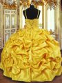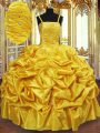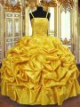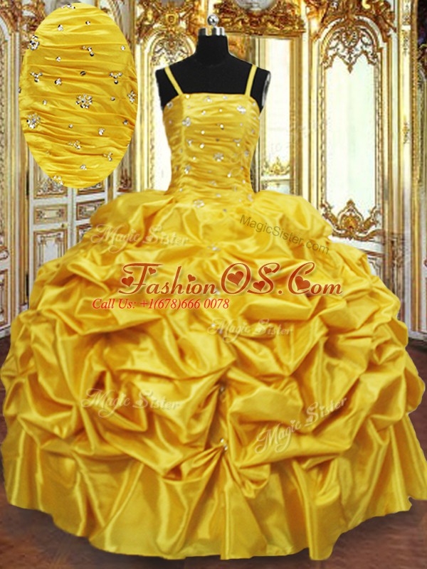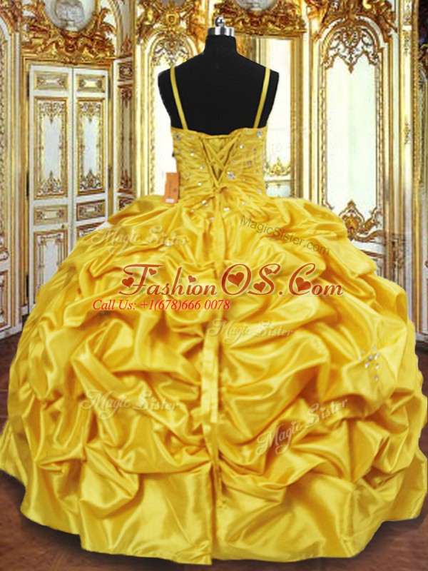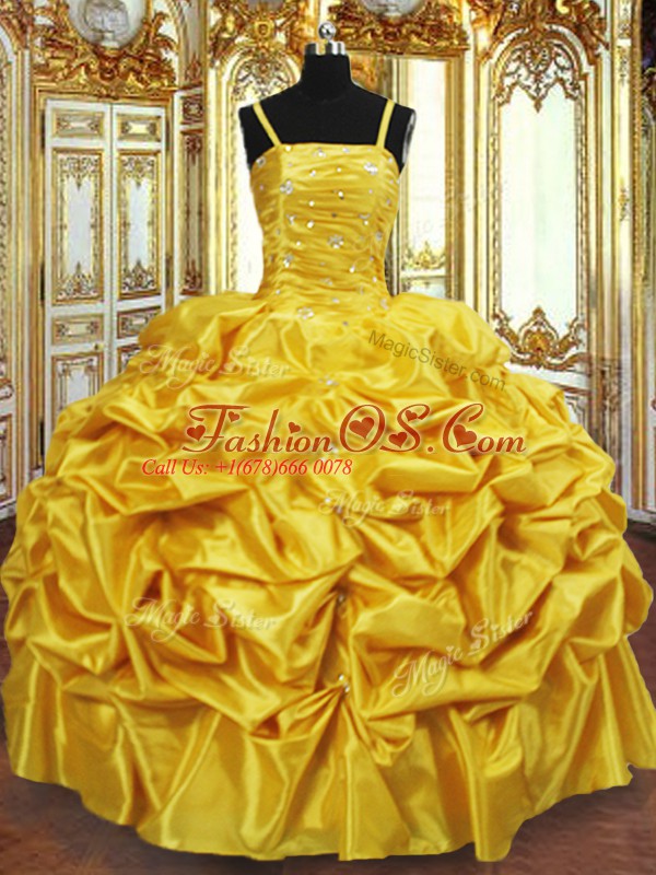 Home >  Quinceanera Dresses >  Fast Delivery Quinceanera Dresses > Beading and Pick Ups Ball Gown Prom Dress Gold Lace Up Sleeveless Floor Length