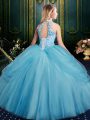 Beading and Pick Ups Ball Gown Prom Dress Lilac Lace Up Sleeveless Floor Length