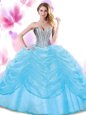 Beading and Pick Ups Sweet 16 Quinceanera Dress Baby Blue Lace Up Sleeveless Floor Length