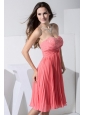Beading and Pleat Decorate Bodice Knee-length Watermelon Red 2013 Prom / Homecoming Dress