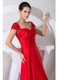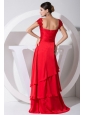 This bright red chiffon prom dress has a feminine and romantic style for those of us who love being a girl. A stunning fitting A-line chiffon gown that is perfect for any formal occasion. A trendy long cap sleeves dress with small floral accents and ruched bust that draws all the attention to your beautiful shoulders and face. Asymmetrical layers on the skirt add beauty and grace to the dress.