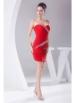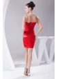Beading and Ruching Decorate Bodice Red Chiffon Spaghetti Straps Mini-length 2013 Prom Dress