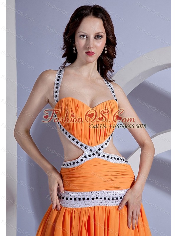 You will be the shining star in any occasion with this gorgeous dress. It features a fashionable halter top sweetheart neckline. A pleated and sexy bodice was introduced to give a unique apperance.The pleated skirt is cut above the knee toghther with the open criss cross back make the dress sassy and stunning.