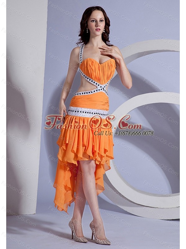 Beading and  Ruching Decorate Bodice Ruffles Straps Asymmetrical 2013 Prom Dress