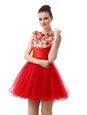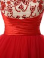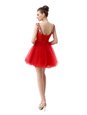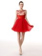 Beading and Ruching Dress for Prom Red Zipper Cap Sleeves Mini Length