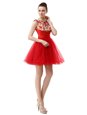 Home >  Prom Dresses >  Elegant Prom Dresses > Beading and Ruching Dress for Prom Red Zipper Cap Sleeves Mini Length