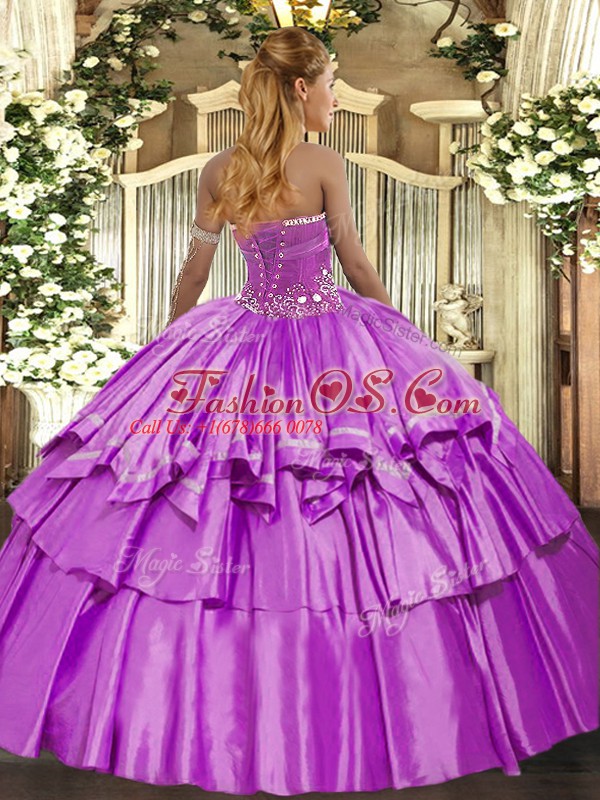 Beading and Ruffled Layers Ball Gown Prom Dress Lilac Lace Up Sleeveless Floor Length