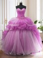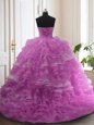 Beading and Ruffled Layers Quinceanera Dresses Lilac Lace Up Sleeveless With Train Sweep Train