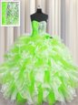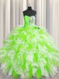 Beading and Ruffles 15th Birthday Dress Multi-color Lace Up Sleeveless Floor Length