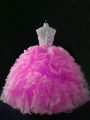 Beading and Ruffles and Pick Ups Sweet 16 Dresses Rose Pink Zipper Sleeveless Floor Length