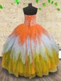 Beading and Ruffles and Sequins Ball Gown Prom Dress Multi-color Lace Up Sleeveless Floor Length
