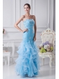Beading  and Ruffles Decorate Bodice Mermaid Aqua Blue Ankle-length Prom Dress For 2013 Strapless
