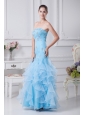Beading and Ruffles Decorate Bodice Mermaid Aqua Blue Ankle-length Prom Dress For 2013 Strapless