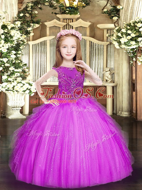 Home >  Special Occasion Dresses >  Lovely Little Girl Pageant Dresses > Beading and Ruffles Kids Formal Wear Fuchsia Zipper Sleeveless Floor Length