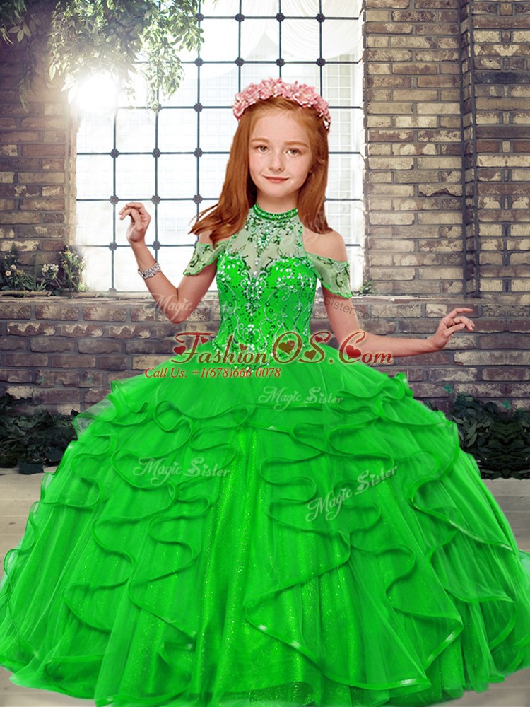 Beading and Ruffles Kids Pageant Dress Lace Up Sleeveless Floor Length