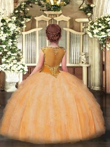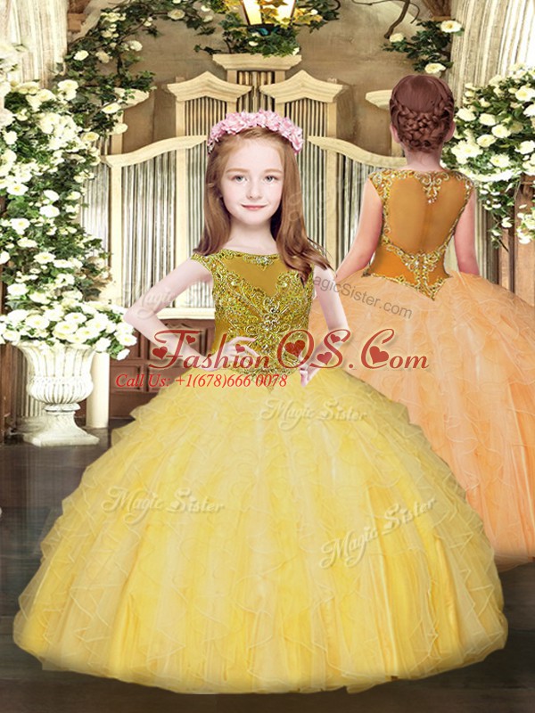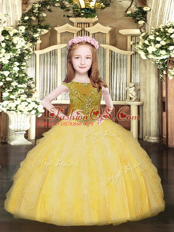 Beading and Ruffles Little Girl Pageant Gowns Gold Zipper Sleeveless Floor Length