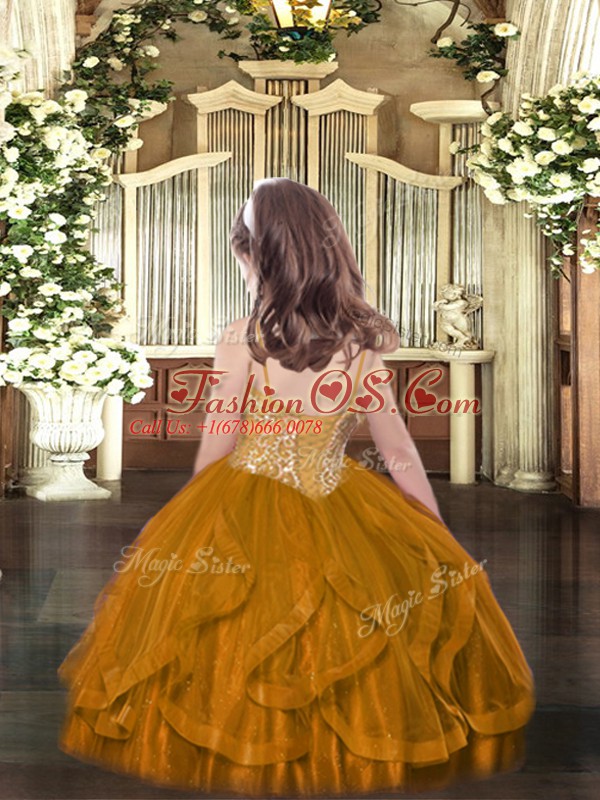 Beading and Ruffles Little Girls Pageant Dress Wholesale Blue Lace Up Sleeveless Floor Length