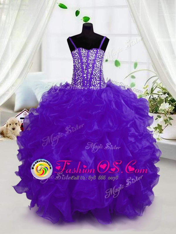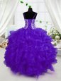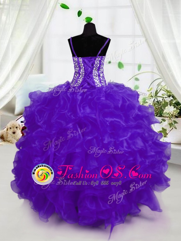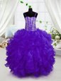 Beading and Ruffles Little Girls Pageant Gowns Purple Lace Up Sleeveless Floor Length