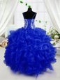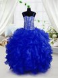 Beading and Ruffles Pageant Gowns For Girls Royal Blue Lace Up Sleeveless Floor Length