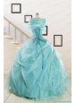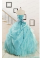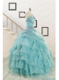 Beading and Ruffles Pretty Quinceanera Dresses in Turquoise for 2015