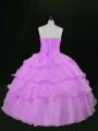 Beading and Ruffles Quince Ball Gowns Lavender Lace Up Sleeveless Floor Length
