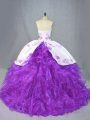 Beading and Ruffles Quinceanera Gown Purple Lace Up Sleeveless Brush Train