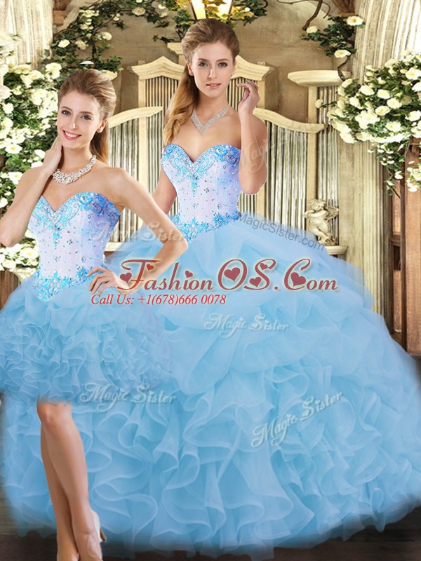 Beading and Ruffles Sweet 16 Dresses Blue Lace Up Sleeveless Floor Length