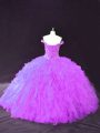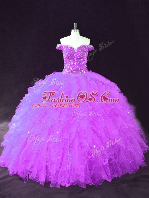 Beading and Ruffles Vestidos de Quinceanera Purple Lace Up Sleeveless Floor Length