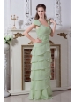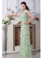 Beading and Rulles Layers Apple Green Straps Floor-length Dama Dress