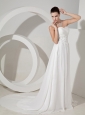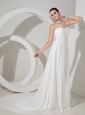 Home >  Wedding Dresses >  Affordable Wedding Dresses > Beading and Sequins Decorate Waist Sweetheart Neckline Chiffon Brush Train Wedding Dress For 2013