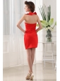Home >  Prom Dresses >  Elegant Prom Dresses > Beading Column Halter Red Taffeta Mini-length Prom Dress