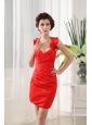 A sexy dress! The flirt sweetheart neckline accented with unique straps that is bedecked with ruchings makes it gorgeous enough. The taffeta fabric and hidden zipper makes the dress fitted for you. This mini-length red dress is the one that will conquer countless heart of women and girl. Simple yet sexy!