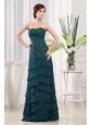 Can not decide wear which one to attend the special day? Get this gorgeous teal dress for your prom, formal evening and the celebrity. It features the strapless ruching bodice, which is heavily embellished with dazzling beadwork. Romantic chiffon fabric forming gorgeous layers falling down to the floor. The floor-length skirt is smooth and elegant. The simple zipper up completes the look.