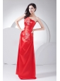 Beading Decorate Bodice Floor-length 2013 Prom Dress Strapless Red Taffeta