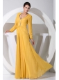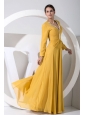 Beading Decorate Bodice Gold Chiffon Floor-length Long Sleeves Mother Of The Bride Dress For 2013