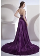 Beading Decorate Bodice Halter A-line Elastic Woven Satin Brush Train 2013 Prom Dress