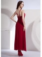 Beading Decorate Bodice High Slit Ankle-length Wine Red Chiffon 2013 Prom Dress