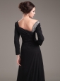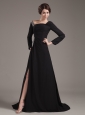 Home >  Special Occasion Dresses >  Mother of the Bride Dresses > Beading Decorate Bodice High Slit Off The Shoulder Black Chiffon Brush Train Long Sleeves 2013 Mother of the Bride Dresses