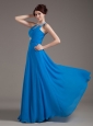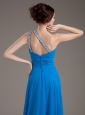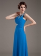 Beading Decorate Bodice One Shoulder Blue Chiffon 2013 Prom Dress Floor-length