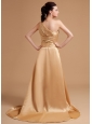 Beading Decorate Bodice One Shoulder High Slit Satin Champagne Brush Train 2013 Prom Dress