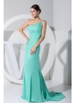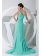 Home >  Prom Dresses >  Popular Prom Dresses > Beading Decorate Bodice One Shoulder Turquoise Chiffon Brush Train Prom Dress For 2013