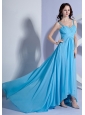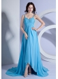 Beading Decorate Bodice Straps Light Blue Empire Brush Train 2013 Prom Dress