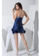 Beading Decorate Bust Hand Made Flowers Navy Blue Mini-length Prom Dress For 2013