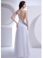 Beading Decorate One Shoulder and Waist High Slit Ankle-length White Chiffon 2013 Prom Dress