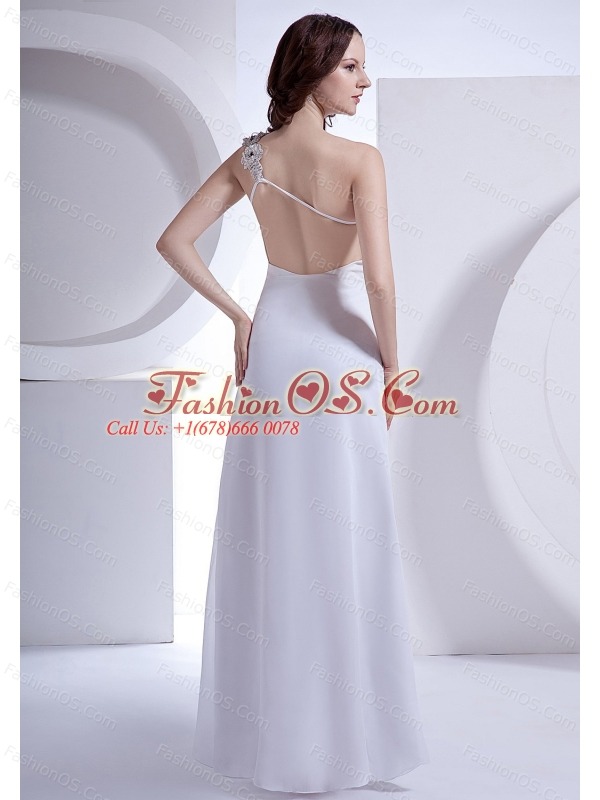 Home >  Prom Dresses >  Elegant Prom Dresses > Beading Decorate One Shoulder and Waist High Slit Ankle-length White Chiffon 2013 Prom Dress