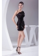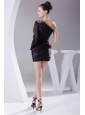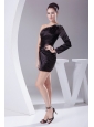 Home >  Prom Dresses >  Beautiful Prom Dresses > Beading Decorate One Shoulder Black Taffeta Mini-length Long Sleeve Prom / Cocktail Dress For 2013