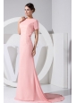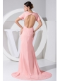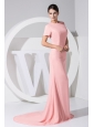 Beading Decorate Scoop Neckline Brush Train Light Pink Chiffon 2013 Prom Dress